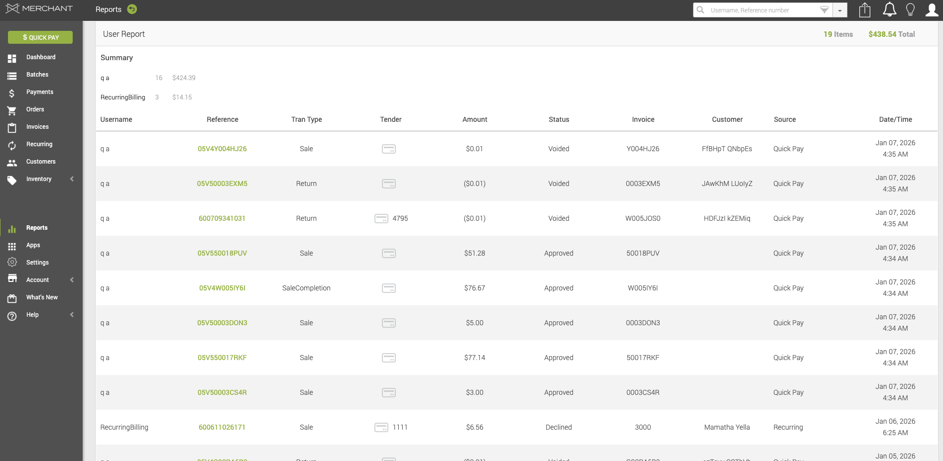 - Source – The source from which the transaction was initiated (for example, Recurring, _Quick Pqy).