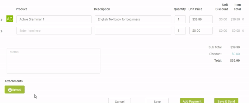 - **Memo** - Additional information about the invoice. This is completely optional.