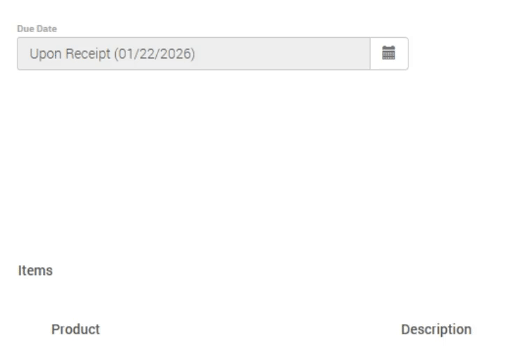 - Due Date - Day on which the invoice must be paid: