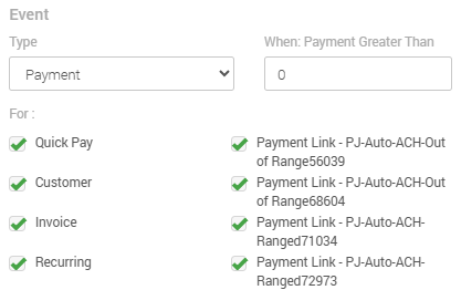 - In the For section, you will find several sources in which a payment could generate, including Quick Pay, Invoice, MX Express, MX Retail, payment links, among others. Choose at least one of them.