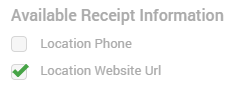 You may check the following boxes in order to show each piece of information on the receipt. Any unchecked boxes won't be shown: