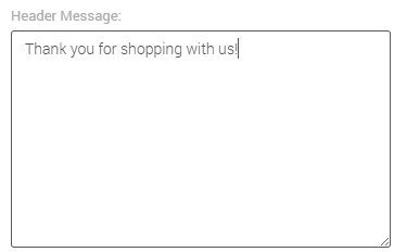 - Header Message: Custom message; you can choose to use this field or leave it blank (Example: Thanks for shopping with us!).