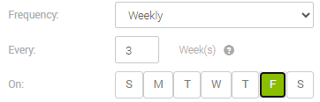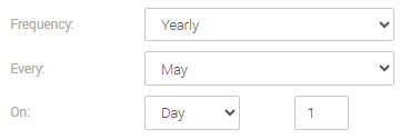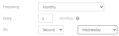 - The Every and On options are not displayed when the Frequency selected is Once.
