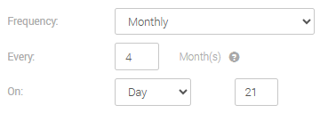 Every - Number of months between each payment (Example: "4" means "every 4 months")