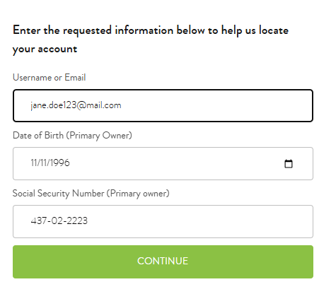 - Enter the Date of Birth and Social Security Number associated with the account.