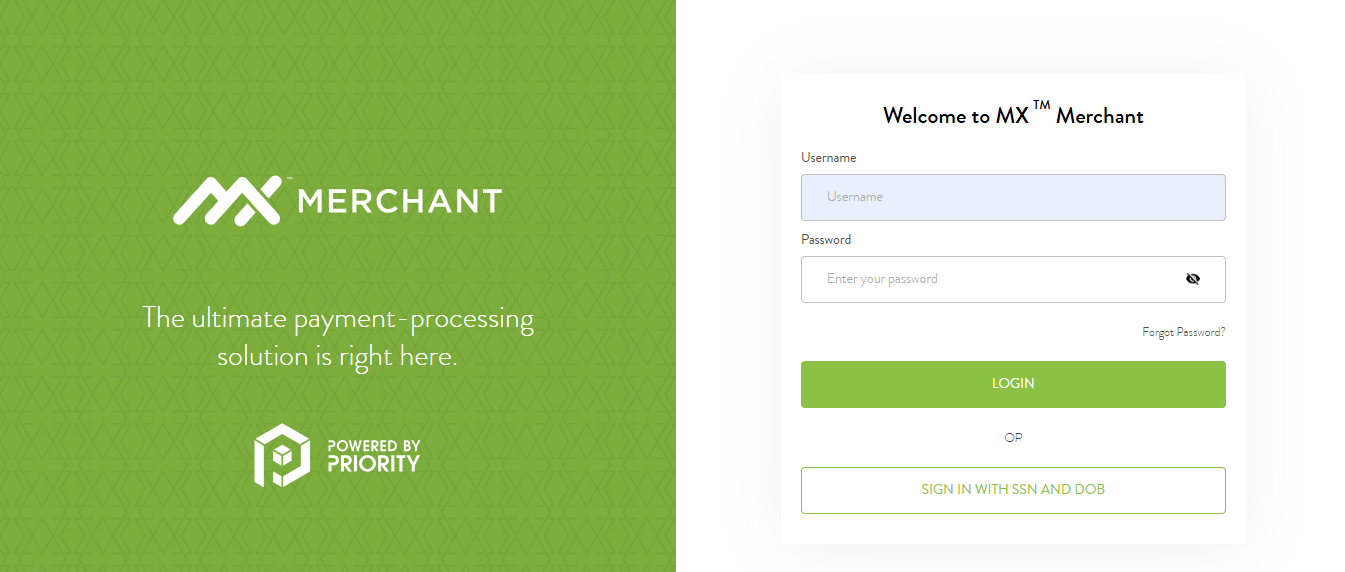 - Go to the MX Merchant™ sign-in page.