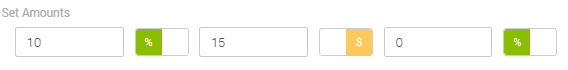 - Set Amounts - You will be able to set up to three different amounts for collecting tips, either as a percentage or as a fixed dollar amount, as in the following example: